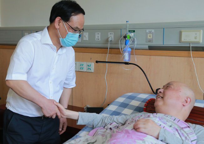 八一前夕,省退役軍人事務(wù)廳黨組書記、廳長(zhǎng)林云舉到省榮軍醫(yī)院看望慰問榮軍并調(diào)研指導(dǎo)工作,廳黨組成員、副廳長(zhǎng)徐華水及廳機(jī)關(guān)有關(guān)處室負(fù)責(zé)人陪同。