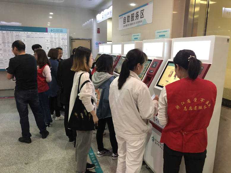 門診就醫(yī)有難題,患者們習慣了第一時間尋求志愿者的幫助。操作自助機,就診樓層指引,報告單打印……門診的各個角落都分布著紅色的身影,成為門診的一道亮麗風景線。