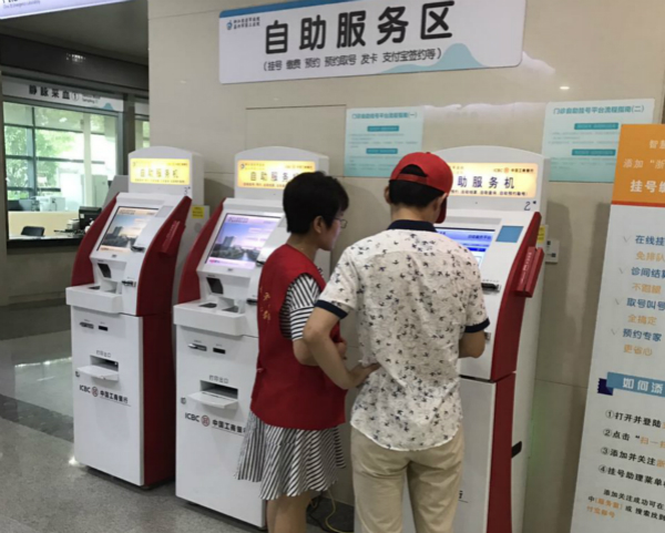 在門診人流量高峰期,醫院行政一支部的黨員志愿者們穿著統一的志愿者服裝,在咨詢臺幫助病人填寫掛號信息單,指導患者自助查詢、自助取藥、自助打印化驗單,攙扶老人,為行動不便的患者提供幫助,引導就診患者到相應輔助科室進行檢查,指引需住院患者到住院處辦理住院手續等志愿服務活動。